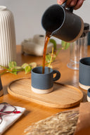 Every piece at Coffeeangel is hand-thrown by John on the potter's wheel, fired to high stoneware temperatures, and finished with food-safe glazes that John formulates himself - a rare skill among contemporary potters.