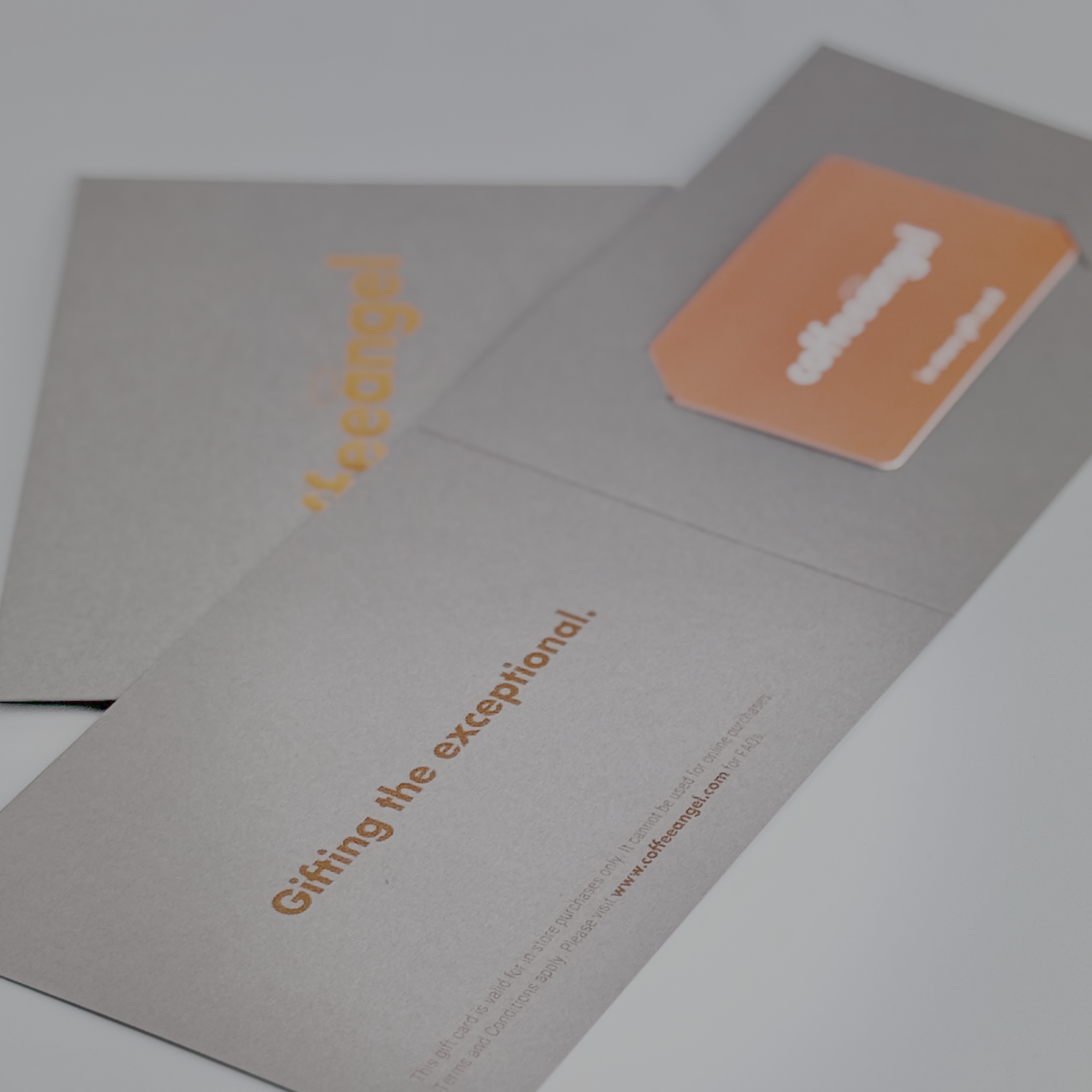 Surprise someone special with a Coffeeangel Physical Gift Card, perfect for coffee lovers who enjoy the full café experience. This beautifully presented, physical gift card can be redeemed at any Coffeeangel location for drinks, treats, or retail items.