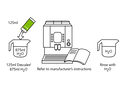 3. Always rinse the machine at least twice with fresh water after decalcifying, and before re-filling and reusing the machine.